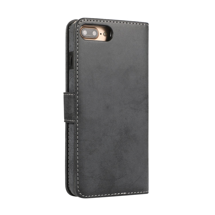 Estuche para iPhone 8 Plus y 7 Plus Klt888-2 Retro 2 en 1 Cuero TPU + PU Tapa Horizontal Magnética Desmontable Soporte Ranuras Tarjetas Marco Fotos Billetera (Negro)
