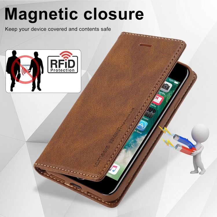 Funda de Cuero Antirrobo para iPhone 8 Plus y 7 Plus Lc.Imeeke Rfid (Marrón)