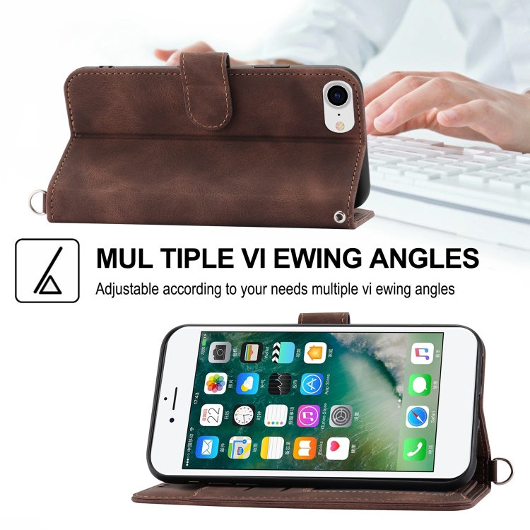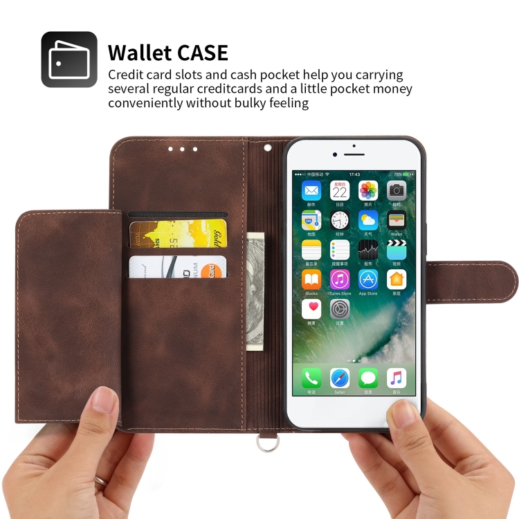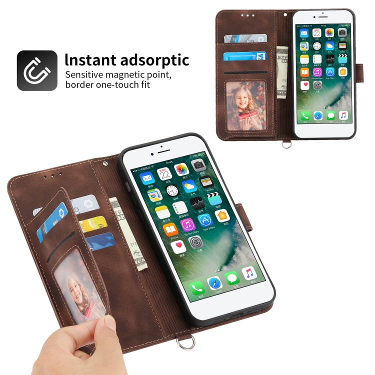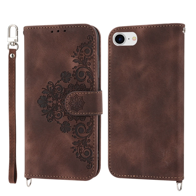 Funda de Cuero Skin-Feel Flowers para iPhone 8 Plus y 7 Plus con Billetera En Relieve (Marrón)
