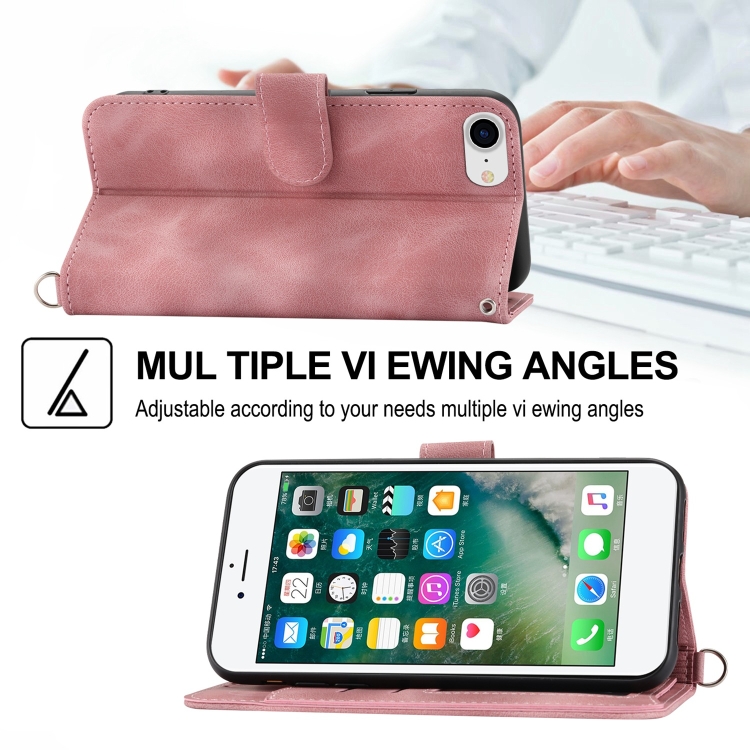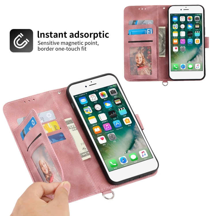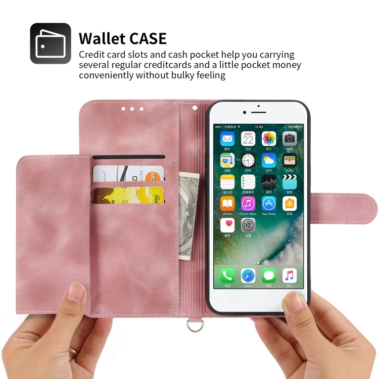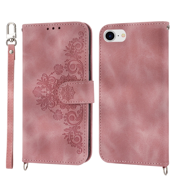 Funda de Cuero Skin-Feel Flowers para iPhone 8 Plus y 7 Plus con Billetera en Relieve (Rosa)