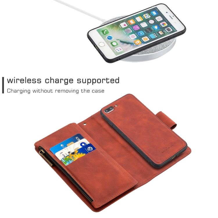 Estuche para iPhone 8 Plus Skin Feel Cuero Pu con Cremallera Magnética Desmontable Tapa Horizontal Ranuras Tarjetas Soporte Billetera Marco Fotos Cordón (Marrón)