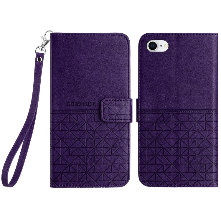 Funda para Teléfono iPhone Se 2022/2020/8/7 Cuero Textura Rómbica Cordón (Púrpura)
