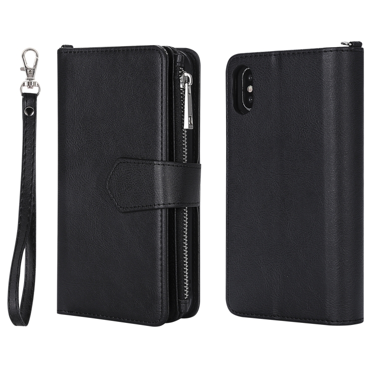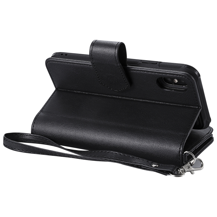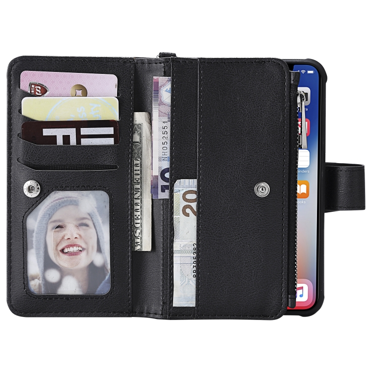 Estuche Protector 2 En 1 para iPhone X Xs con Cremallera Ranuras Tarjetas Soporte Fotos Billetera (Negro)