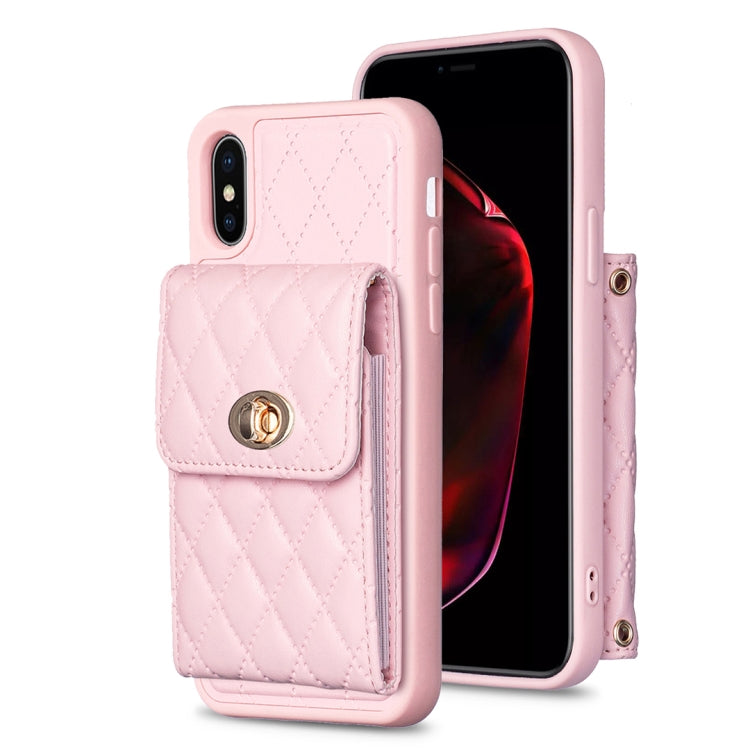 Caja de Teléfono de Cuero Rómbica para iPhone X / Xs Billetera con Hebilla de Metal Vertical (Rosa)