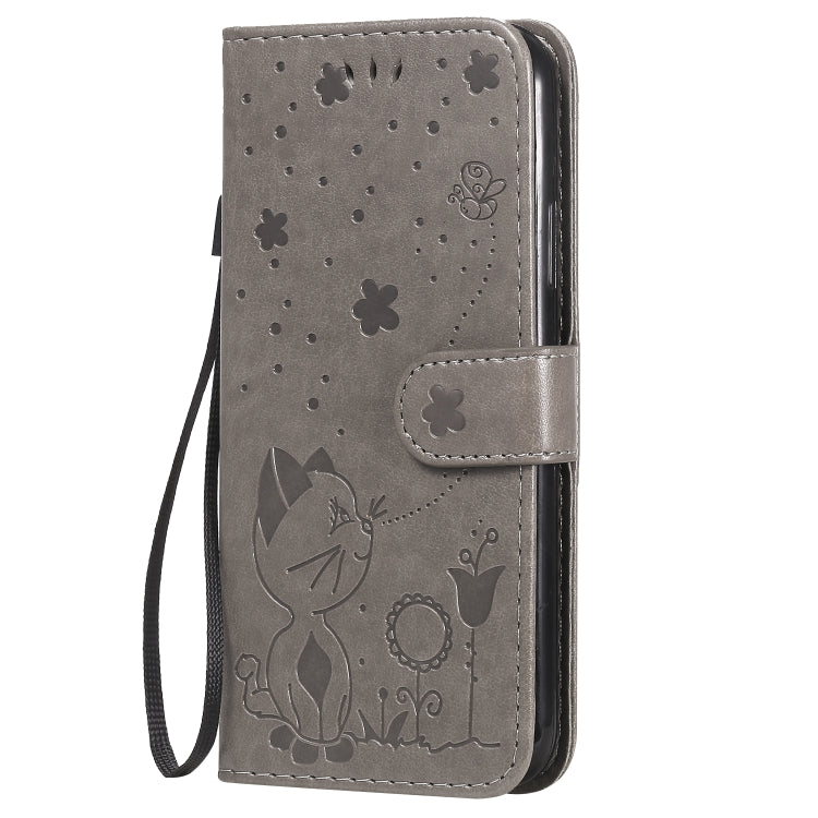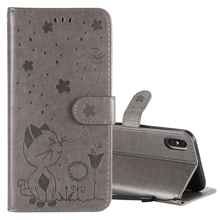 Funda para iPhone X Xs Cat Bee Patrón en Relieve Cuero con Tapa Horizontal Soporte Ranuras para Tarjetas Billetera (Gris)