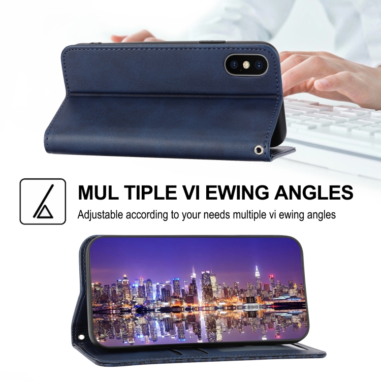 Funda para iPhone X Xs Cubic Grid Textura de Becerro Cierre Magnético Cuero (Azul)