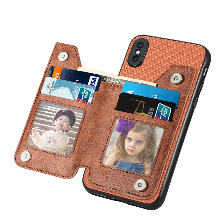 Estuche para Teléfono iPhone X Xs con Billetera y Cremallera Horizontal Fibra de Carbono (Marrón)