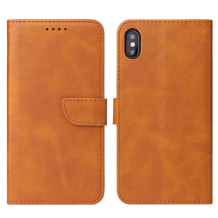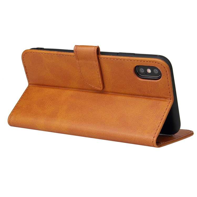 Funda de Cuero para iPhone X Xs con Tapa Horizontal Hebilla Soporte Ranuras Tarjetas Billetera (Caqui)
