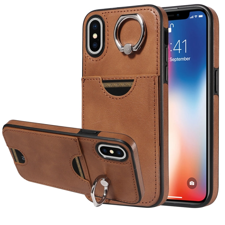 Funda para Teléfono iPhone X Xs con Soporte para Anillo y Ranura para Tarjeta (Marrón)