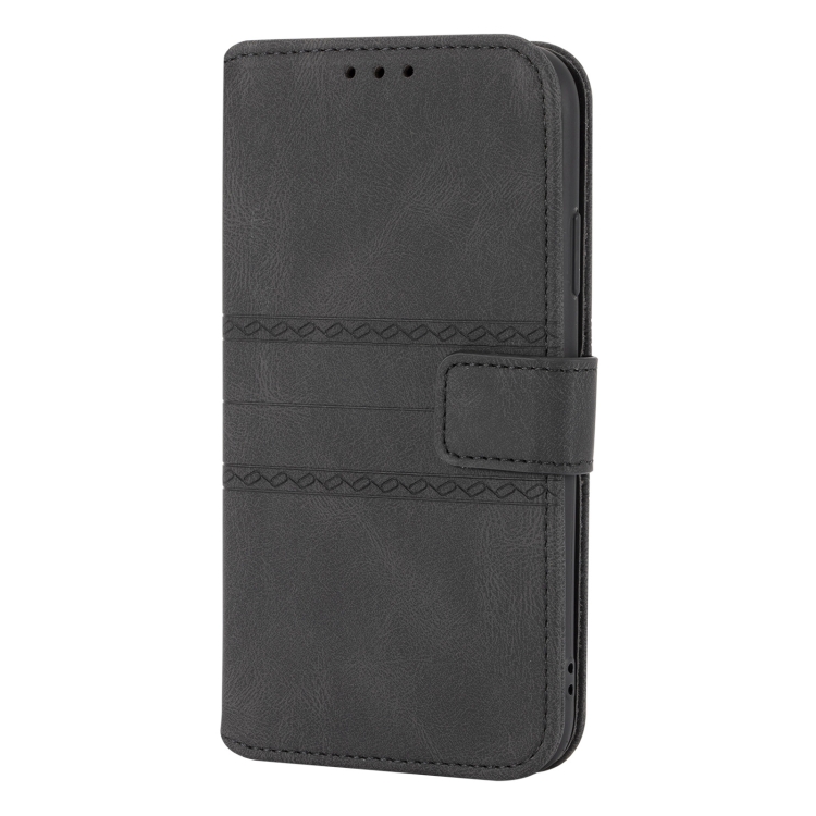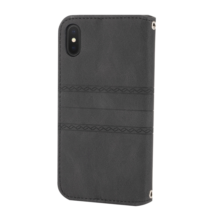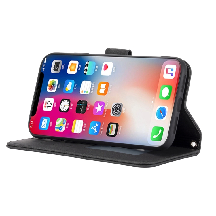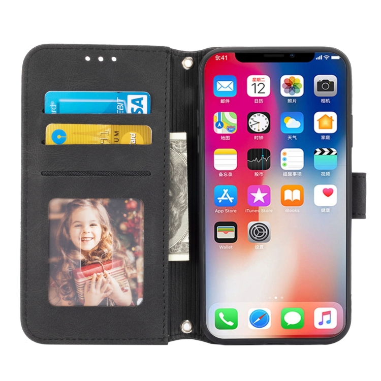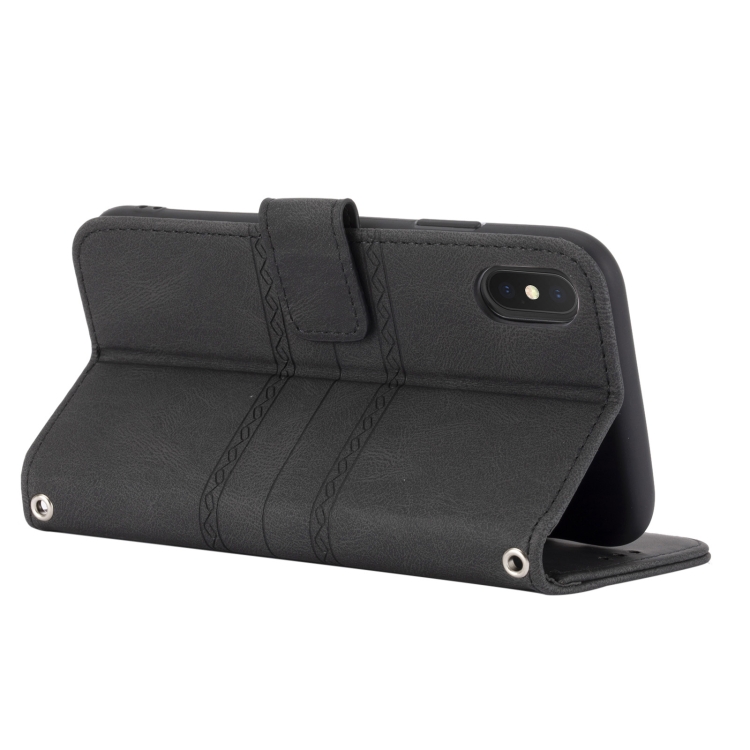 Funda de Cuero para iPhone X Xs Hebilla Magnética a Rayas Pu TPU Tapa Horizontal Soporte Ranura Tarjeta Billetera Marco Fotos Honda (Negro)