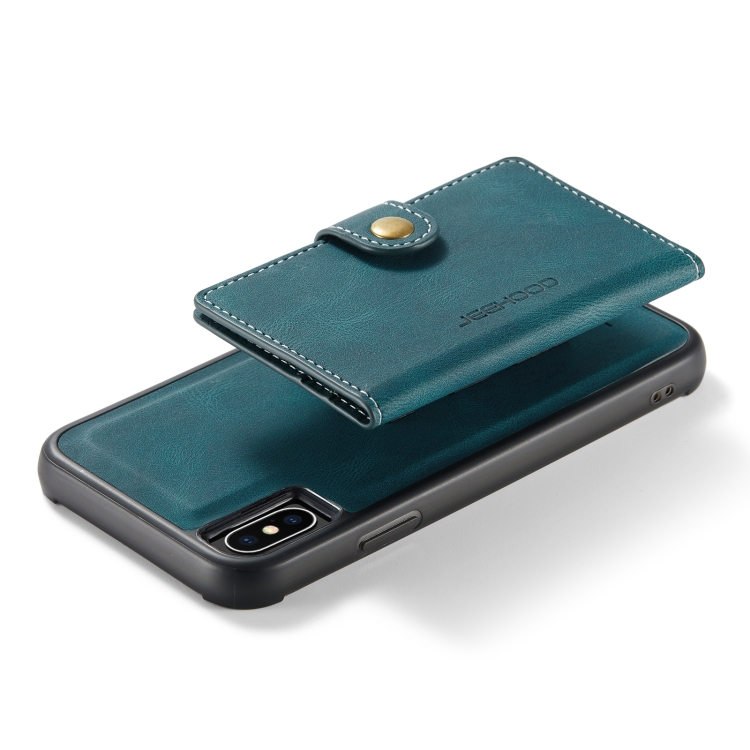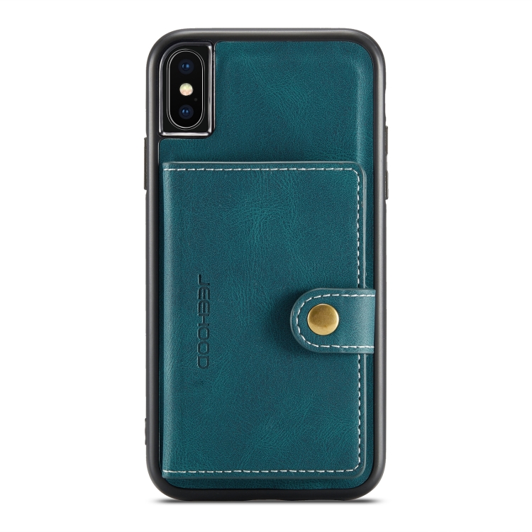 Estuche Protector para iPhone X Xs Jeehood Desmontable Magnético Retro con Billetera y Soporte (Azul)