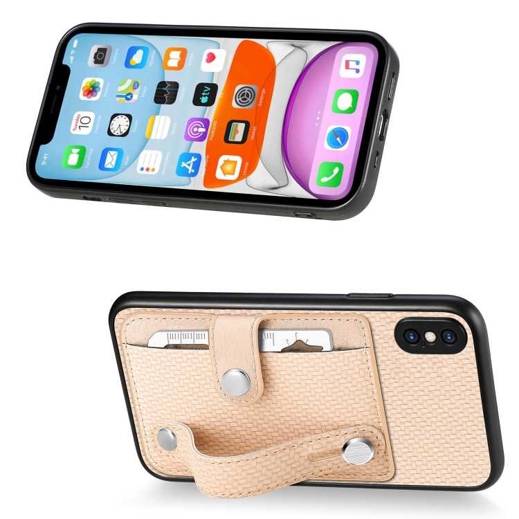 Funda para iPhone X Xs Muñequera Kickstand Tarjeta Monedero Contraportada Caja con Herramienta Cuchillo (Caqui)