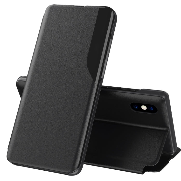 Funda de Cuero para iPhone X Xs con Pantalla Lateral Tapa Horizontal Magnética Soporte a Prueba de Golpes (Negro)