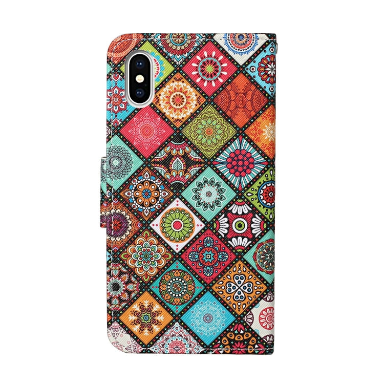 Estuche de Cuero para iPhone X Xs Folk-Custom con Tapa Horizontal Soporte Ranuras para Tarjetas y Billetera