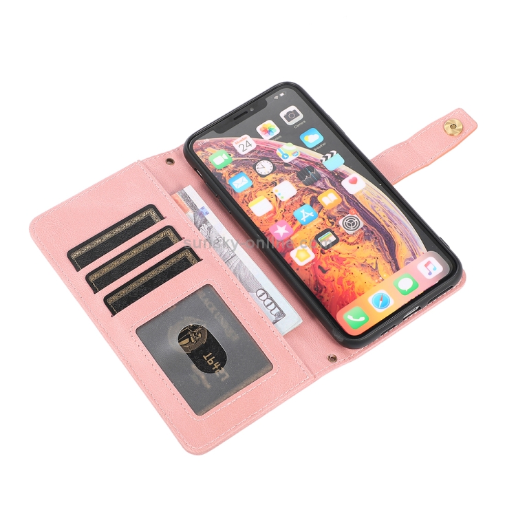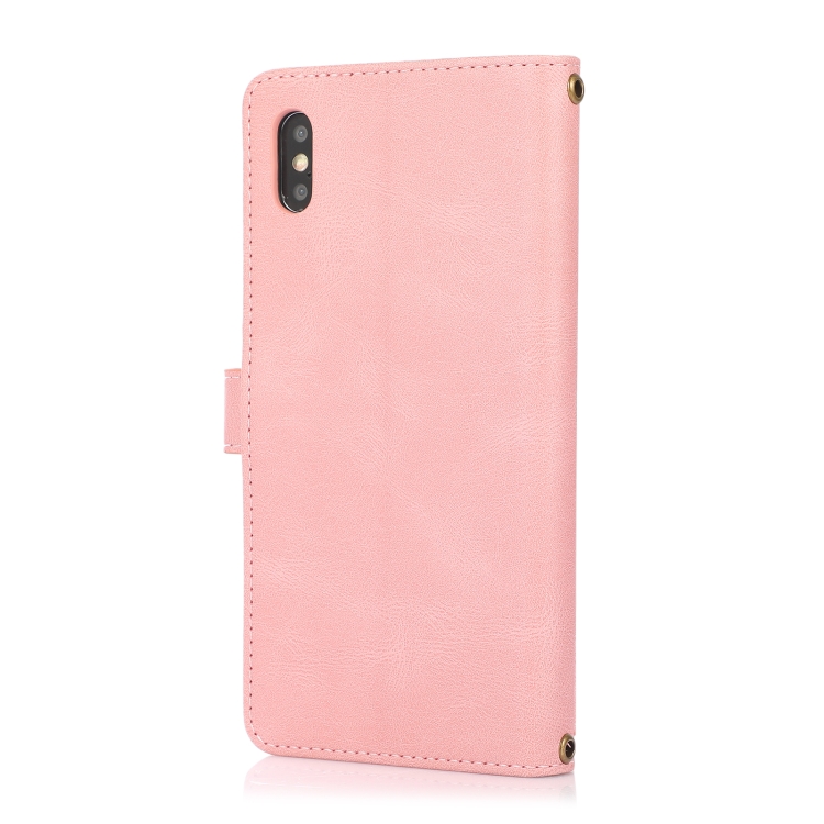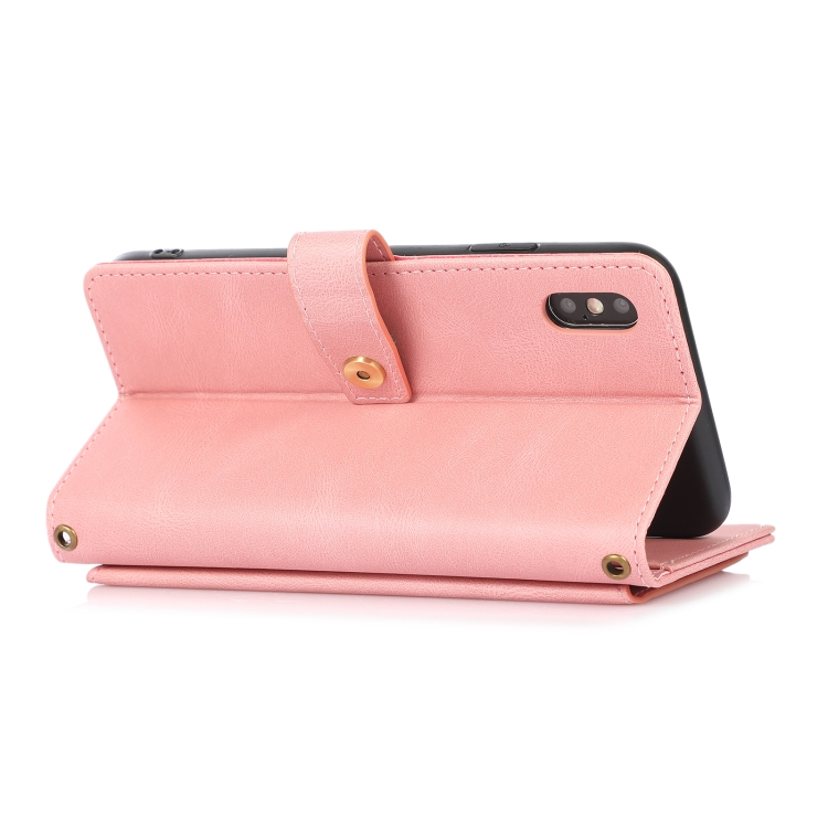 Funda para iPhone X / Xs Pu + TPU Cuero con Tapa Horizontal Soporte Tarjeta Billetera Cordón (Rosa)