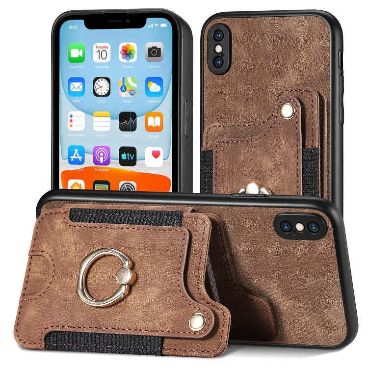 Funda para iPhone X Xs Retro Skin-Feel Ring Multi-Card Wallet Marrón