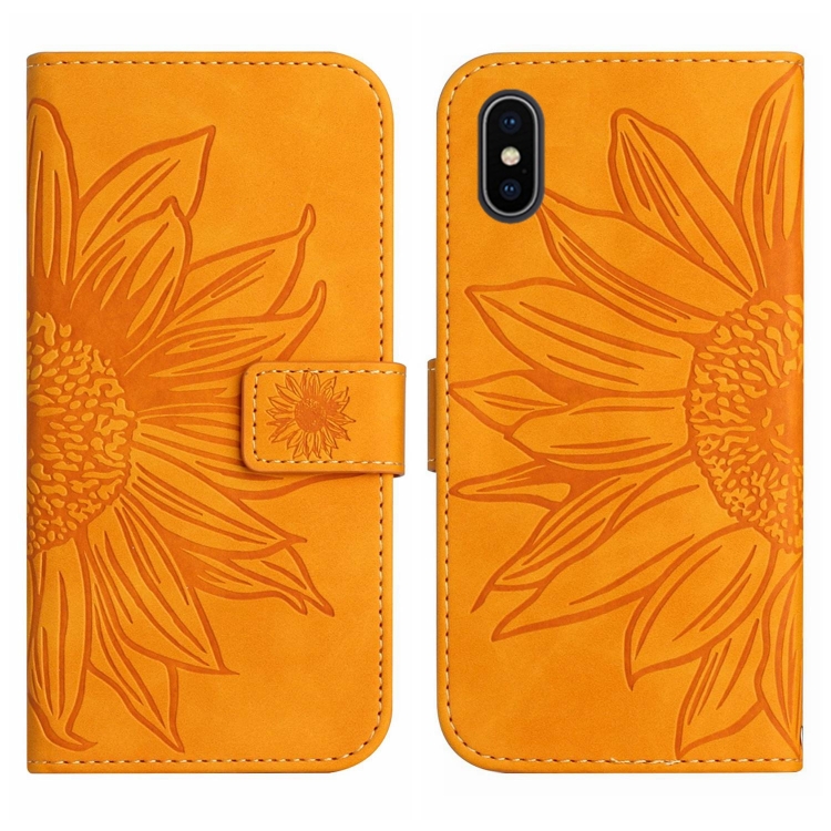 Funda de cuero flip para iPhone X Xs Skin Feel con patrón Sun Flower y cordón (Amarillo)