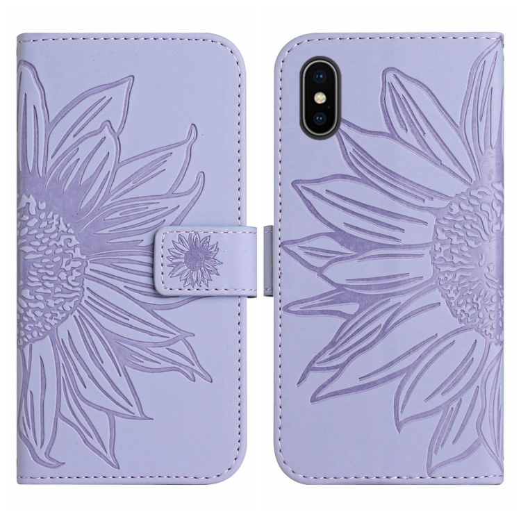 Funda para iPhone X Xs Skin Feel Sun Flower Pattern Flip de Cuero con Cordón (Púrpura)