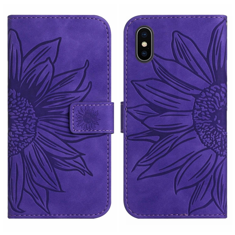 Funda Flip de Cuero para iPhone X Xs Skin Feel Sun Flower Pattern con Cordón (Púrpura Oscuro)