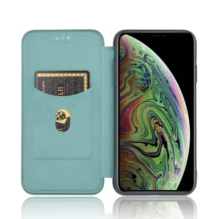 Funda para iPhone X / Xs Textura Fibra de Carbono Flip Horizontal TPU PC Cuero Pu Ranura Tarjeta (Verde)