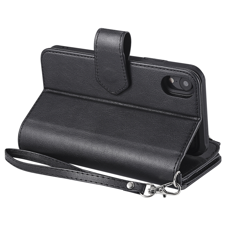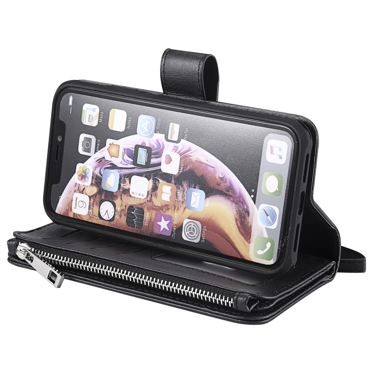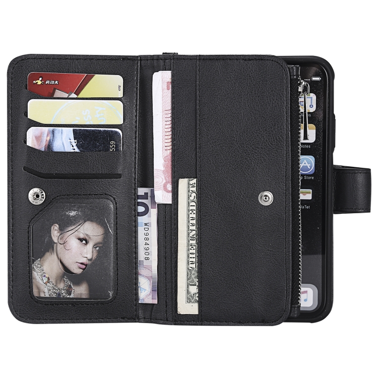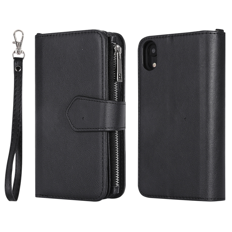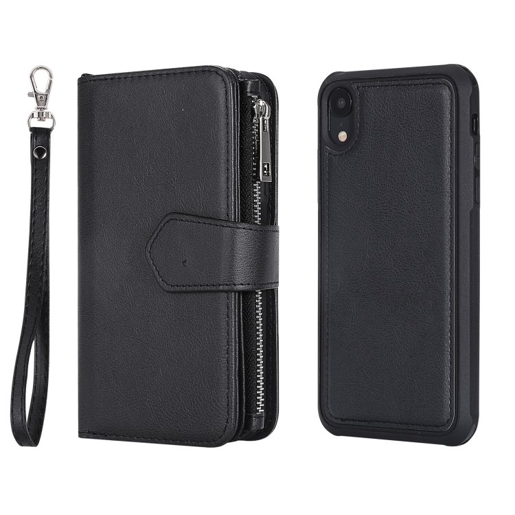 Estuche Protector 2 En 1 para iPhone Xr con Cremallera Ranuras Tarjetas Soporte Fotos Billetera (Negro)