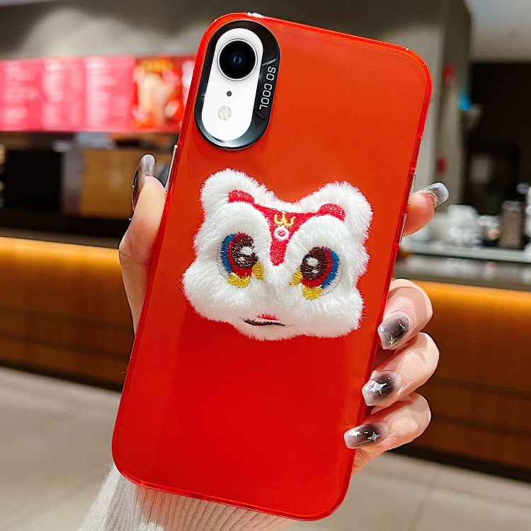 Funda para teléfono iPhone Xr Lion Dance Plush Doll Año Nuevo (León Blanco con Espalda Roja)