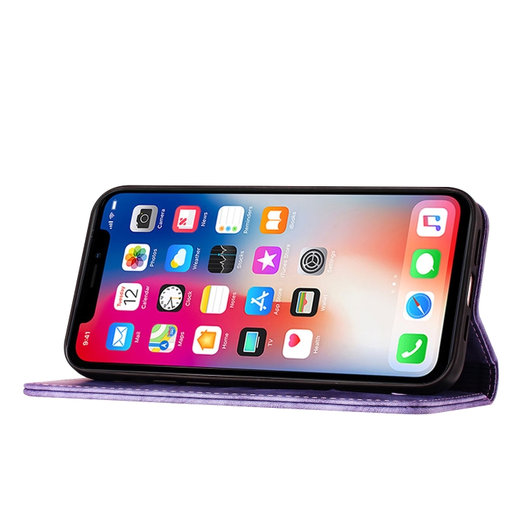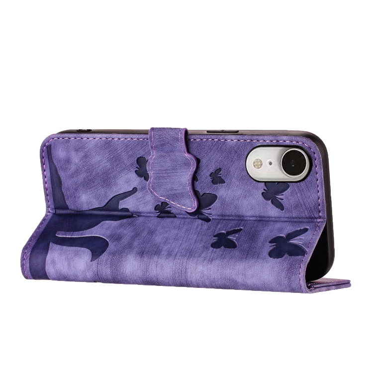 Funda de Teléfono para iPhone Xr Butterfly Cat Cuero con Tapa En Relieve (Púrpura)