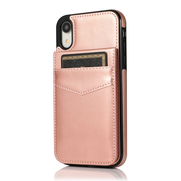 Funda Protectora para iPhone Xr PC + TPU con Soporte y Ranuras para Tarjetas (Oro Rosa)