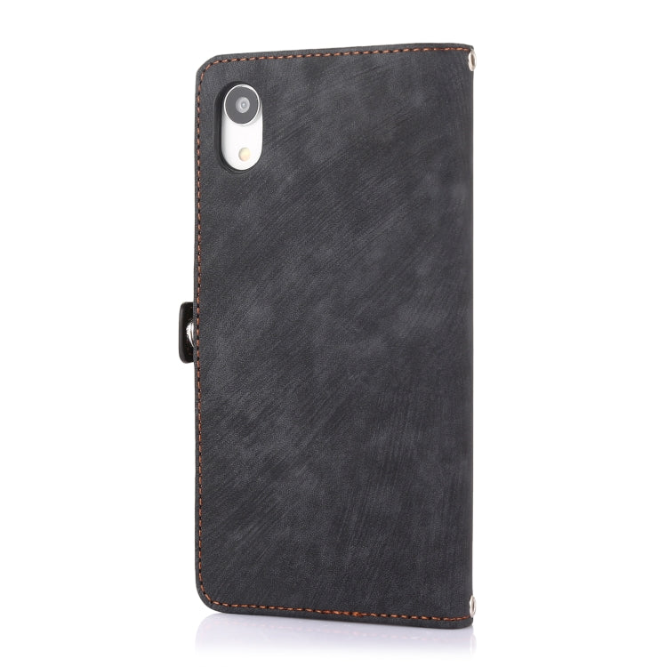 Funda de Cuero para Teléfono iPhone Xr Cremallera Ranura para Tarjeta Hebilla (Negro)