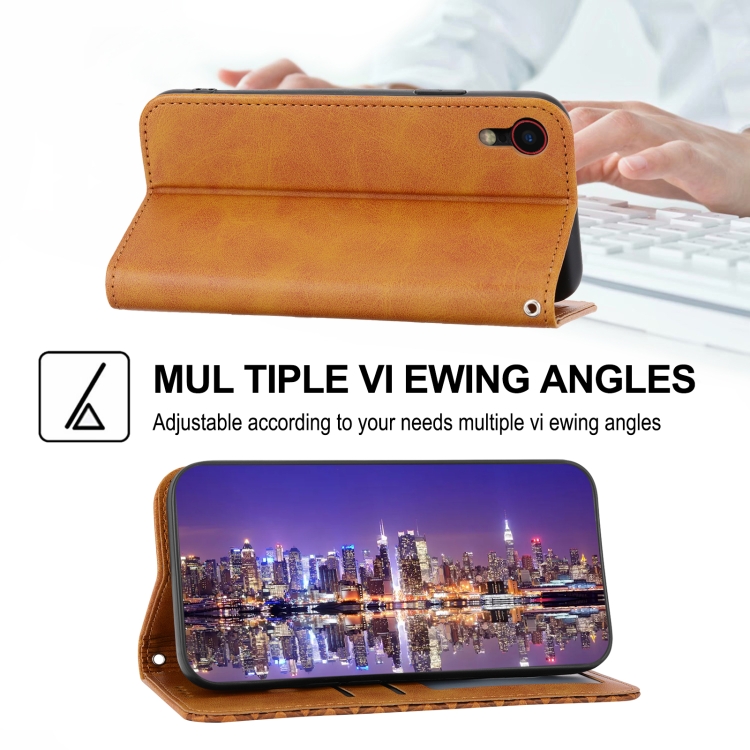 Funda para iPhone Xr Cubic Grid Becerro Textura Cierre Magnético de Cuero (Amarillo)