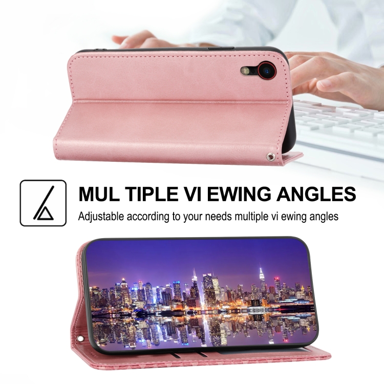 Funda para iPhone Xr Cubic Grid Becerro Textura Cierre Magnético de Cuero (Oro Rosa)