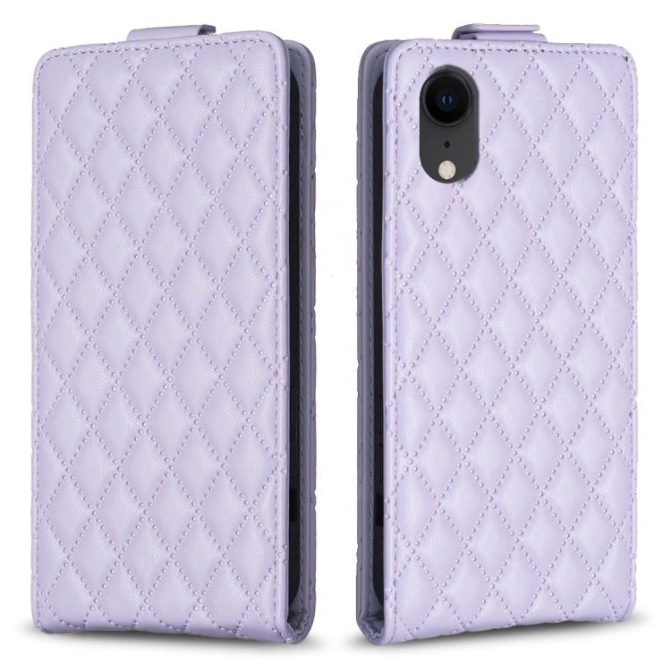 Funda para iPhone Xr Diamond Lattice Cuero con Tapa Vertical (Púrpura)
