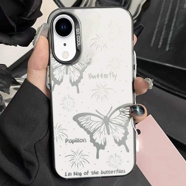 Estuche híbrido para teléfono iPhone Xr TPU con pintura plateada PC (Mariposa hueca negra)
