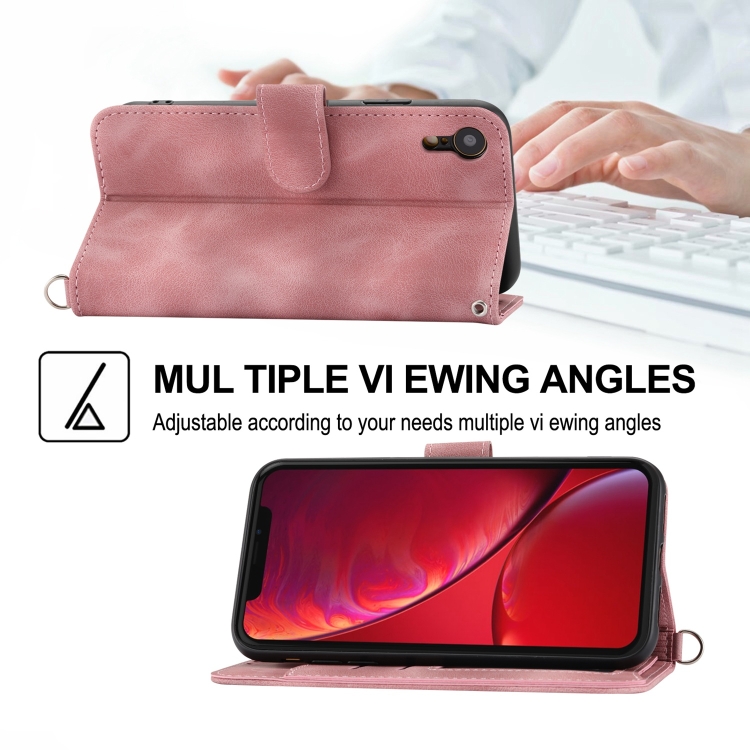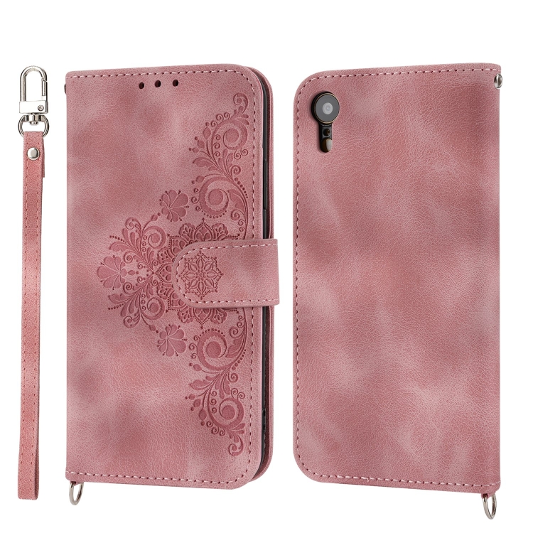 Estuche para teléfono iPhone Xr Cuero con Billetera en relieve de flores (Rosa)
