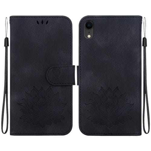 Funda de Cuero para iPhone Xr con Relieve de Loto (Negro)