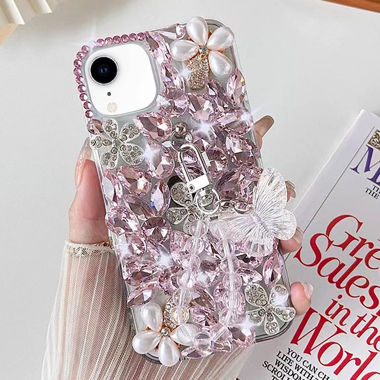 Funda para Teléfono iPhone Xr con Incrustaciones de Diamantes y Mariposas Hecha a Mano (Rosa)