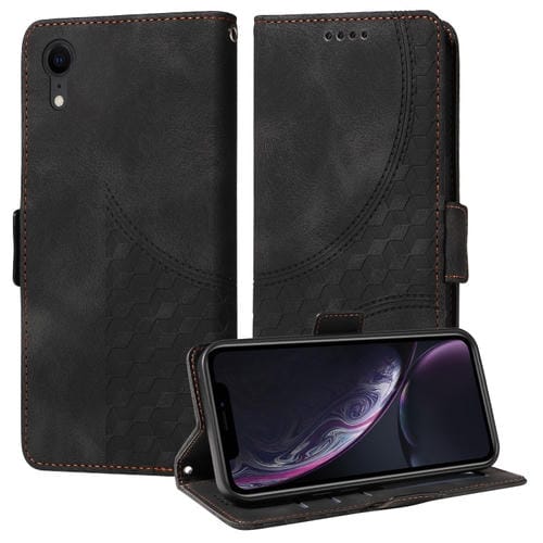 Funda para Teléfono iPhone Xr Cuero Estrellado con Rombos en Relieve (Negro)