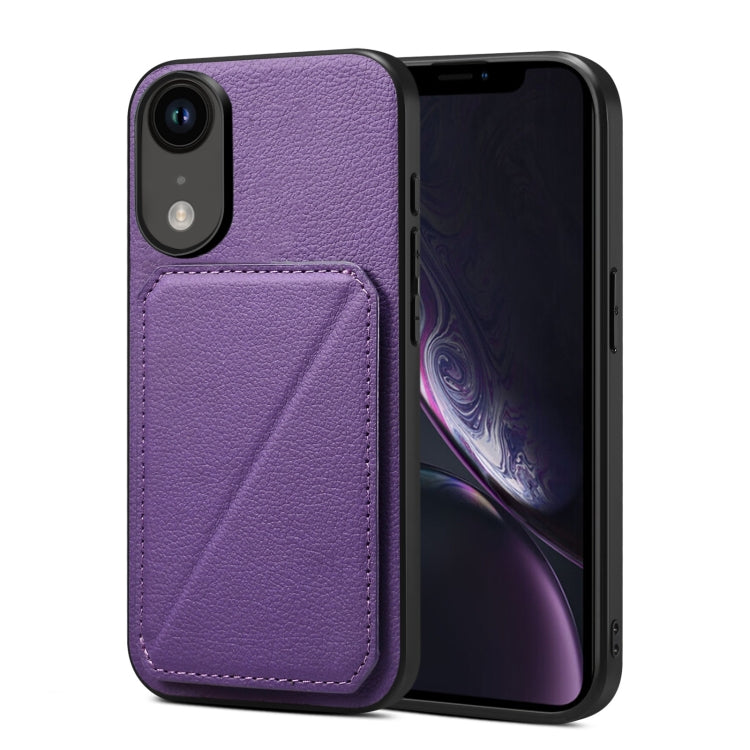Funda Trasera para iPhone Xr de Piel de Becerro de Imitación con Soporte (Púrpura)