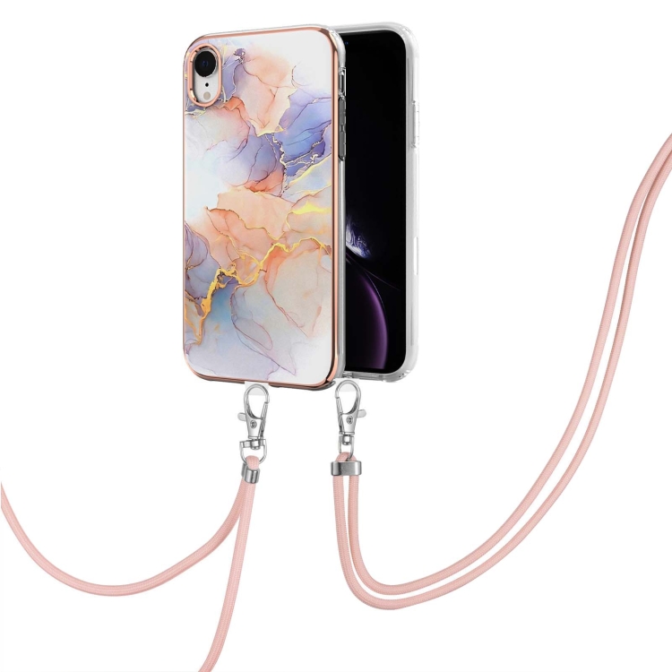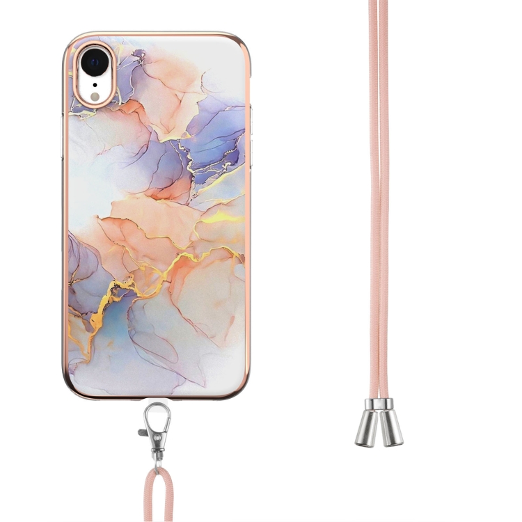 Estuche TPU para iPhone Xr Galvanoplastia Patrón Imd a Prueba de Golpes con Cordón (Mármol Blanco de la Vía Láctea)