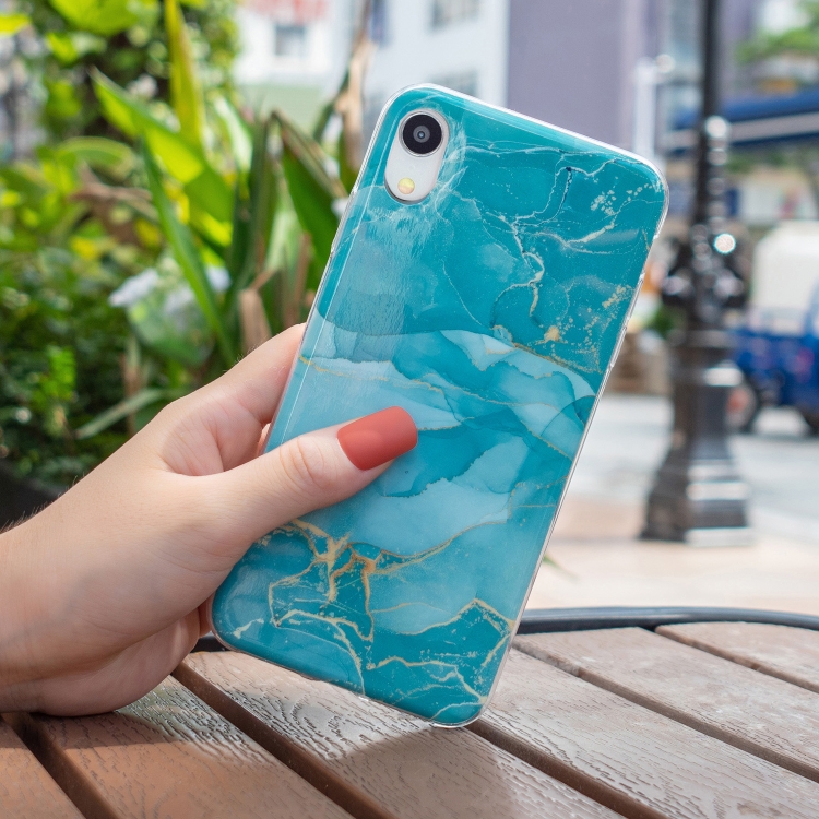 Funda de teléfono TPU iPhone Xr Imd patrón de mármol (Verde)