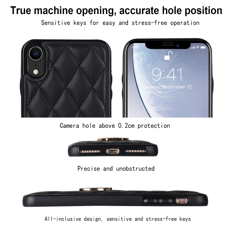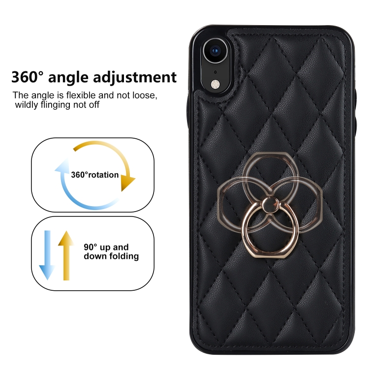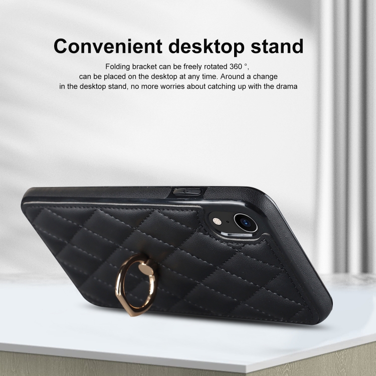 Funda para iPhone Xr Rhombic PU Cuero con Soporte para Anillo (Negro)