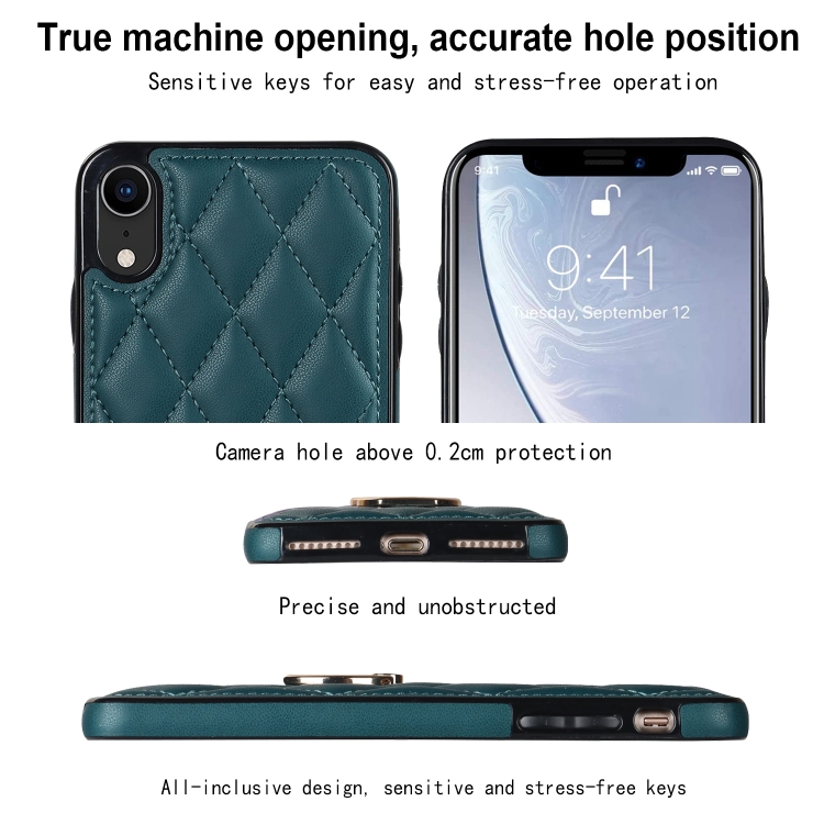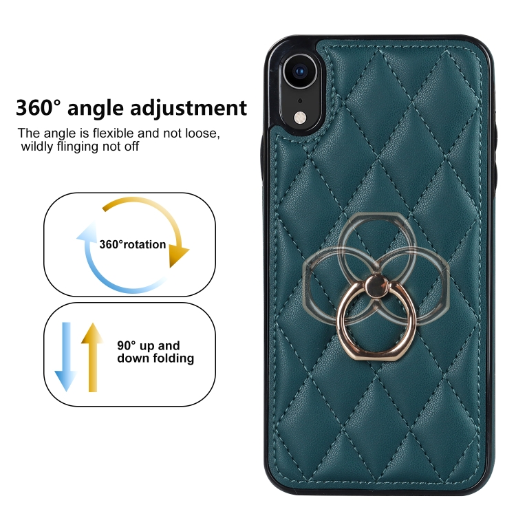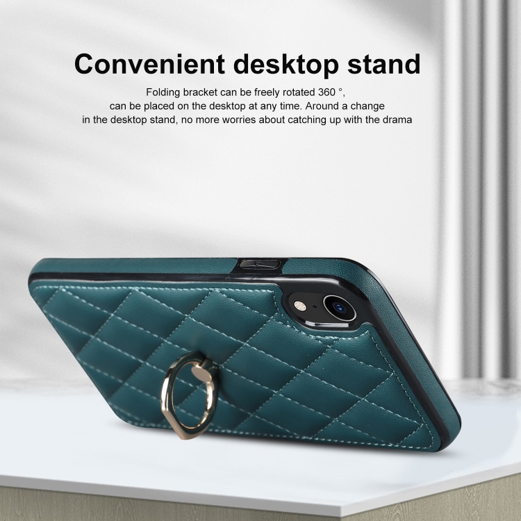 Funda de Cuero Rhombic para iPhone Xr con Soporte para Anillo (Verde)