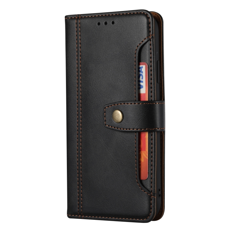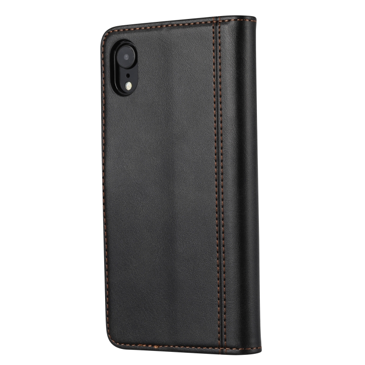 Funda de Cuero iPhone Xr Textura de Pantorrilla Cierre de Doble Pliegue con Tapa Horizontal y Soporte (Negro)