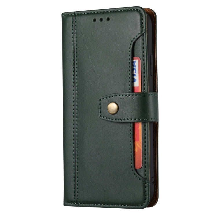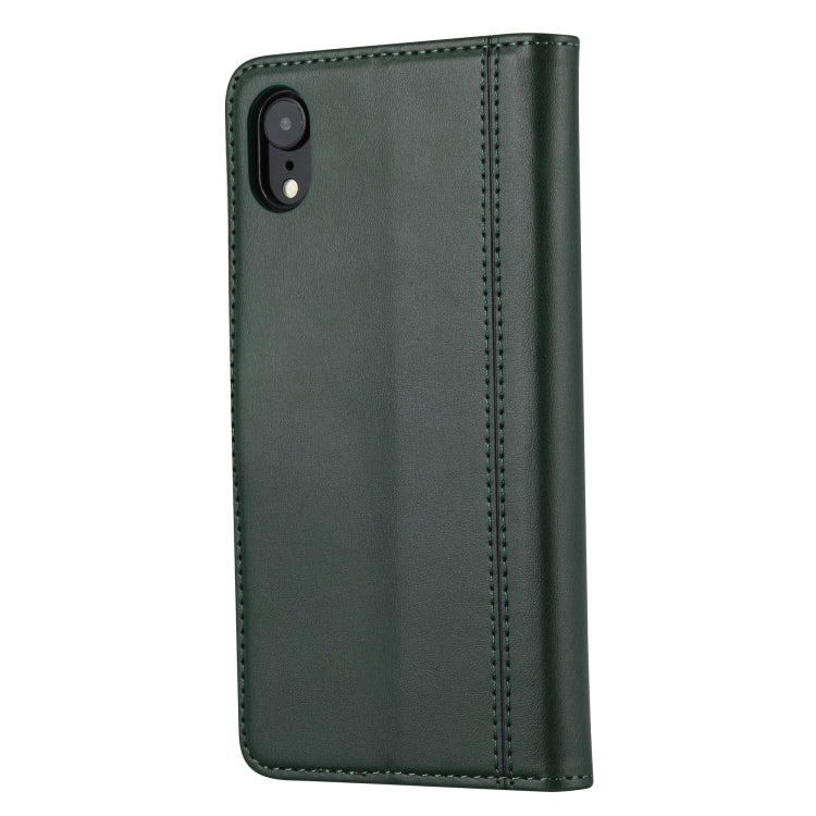 Funda de Cuero para iPhone Xr Textura de Pantorrilla Cierre de Doble Pliegue Tapa Horizontal Marco de Fotos Soporte Ranuras para Tarjetas y Billetera (Verde)