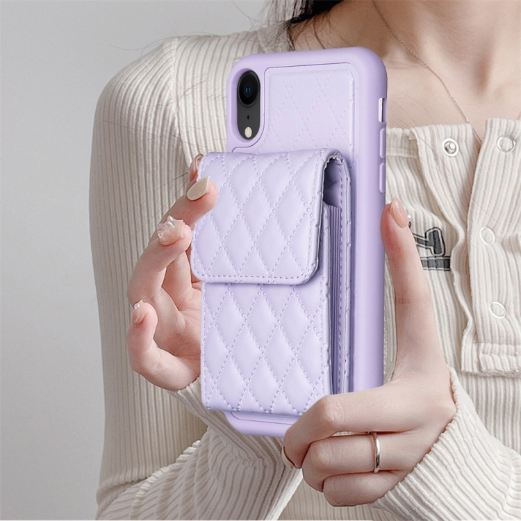Funda Vertical Wallet Rhombic Leather para iPhone Xr (Púrpura)