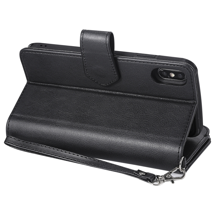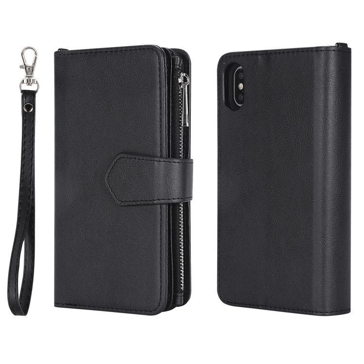 Estuche Protector 2 En 1 para iPhone Xs Max con Cremallera Ranuras para Tarjetas Soporte Billetera (Negro)