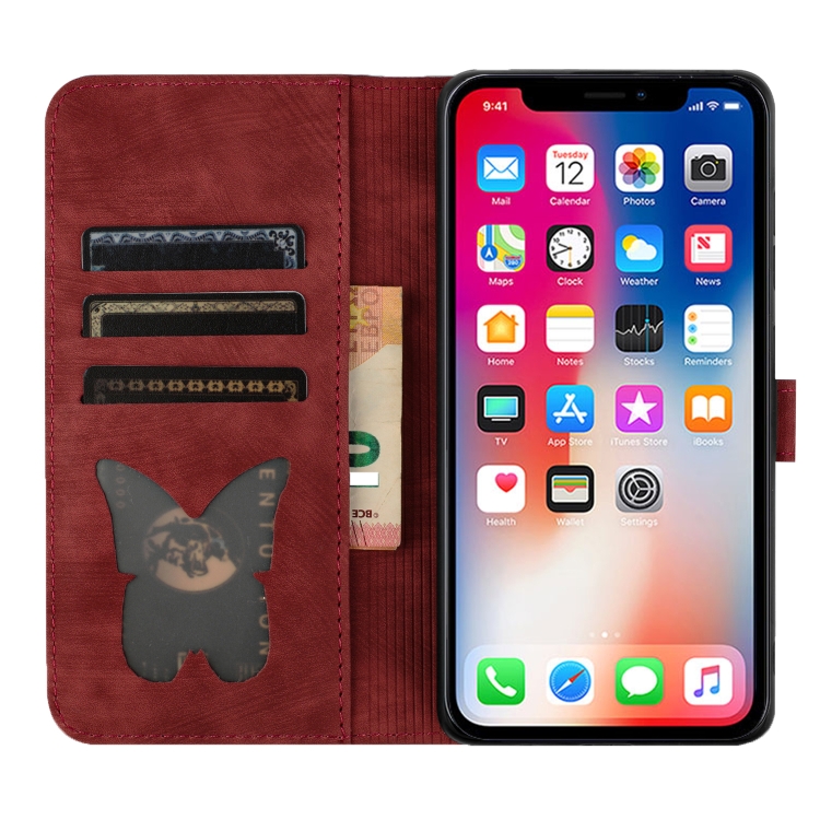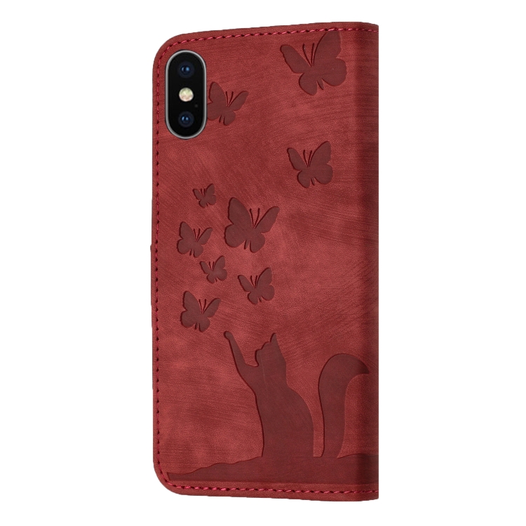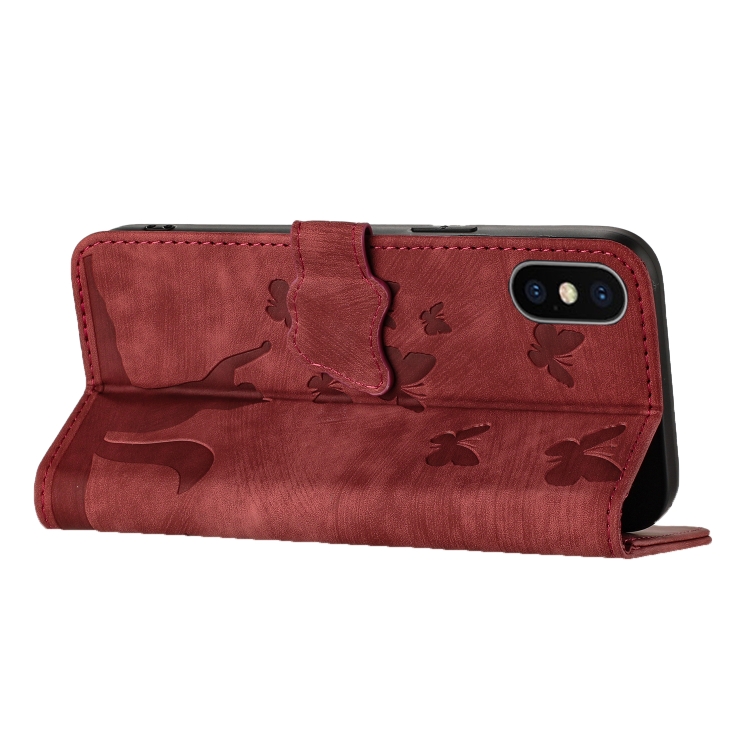 Funda de Cuero para iPhone Xs Max Butterfly Cat con Tapa En Relieve (Rojo)