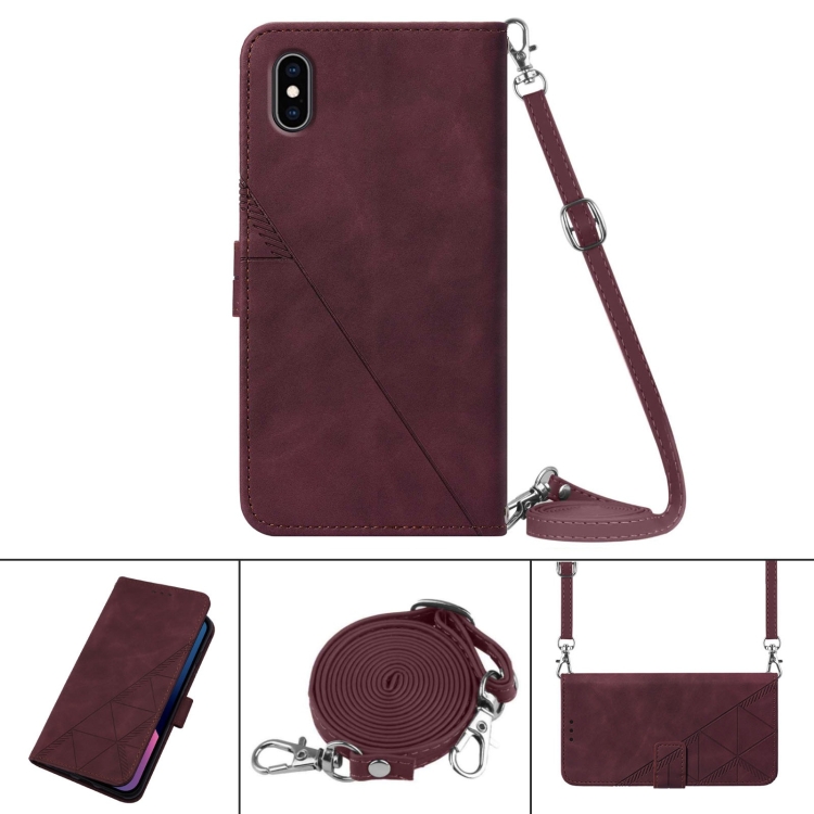 Funda para iPhone Xs Max Crossbody 3D de Cuero con Tapa en Relieve (Rojo Vino)