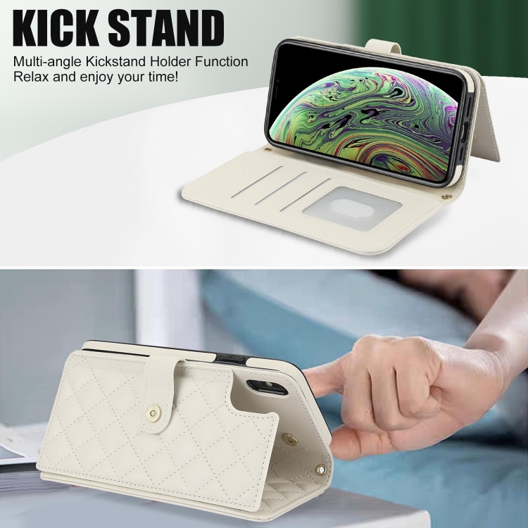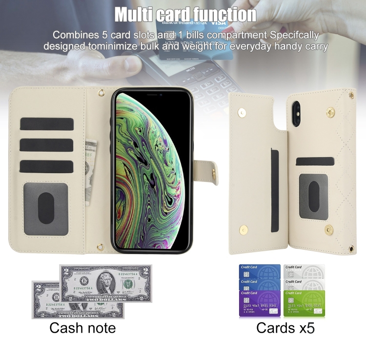 Estuche para Teléfono iPhone Xs Max Crossbody Cuero Rómbico Multifunción (Blanco)