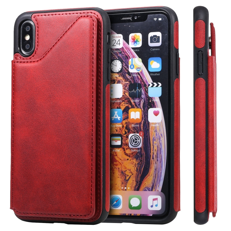Estuche Protector para iPhone Xs Max Textura de Pantorrilla a Prueba de Golpes con Soporte y Ranuras para Tarjetas (Rojo)